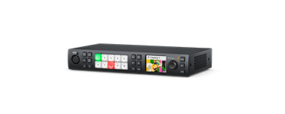 Compact live streaming switcher with 4 standards converted 3G-SDI inputs, built in hardware streaming, multiview, USB webcam, DVE, chroma key, media player and ISO recording of all 4 video inputs.