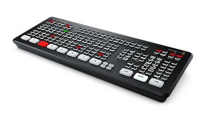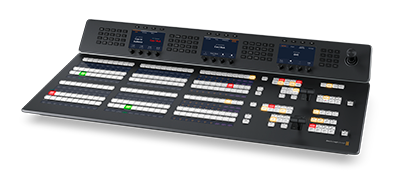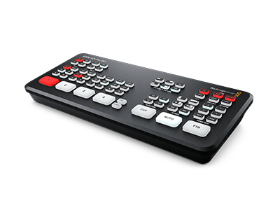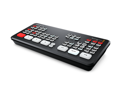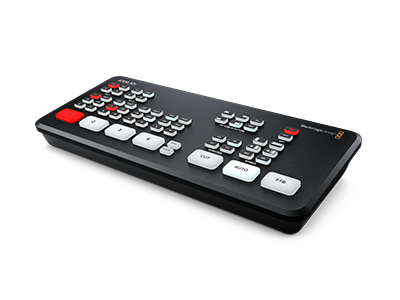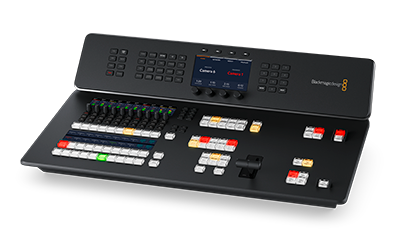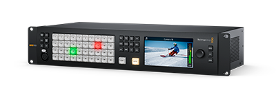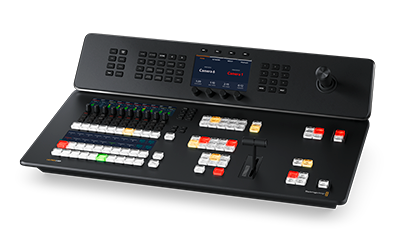 Compact live production switcher with built in broadcast control panel, 8 x 3G-SDI inputs, streaming, recording, multiview, DVE, keyers, USB webcam, media players, talkback and optional cloud storage.