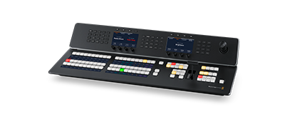 Professional 2 M/E hardware panel with 40 input buttons on each row and 2 independent system control LCDs, one for each row. Get 8 LCDs for custom labels and each row includes a separate select bus.