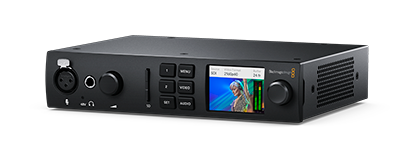 All in one HD capture and playback in a compact 1/3rd rack width design. Powers from Thunderbolt 3 and includes deck control and reference. Supports 3G‑SDI and HDMI, plus upgradable front panel LCD.